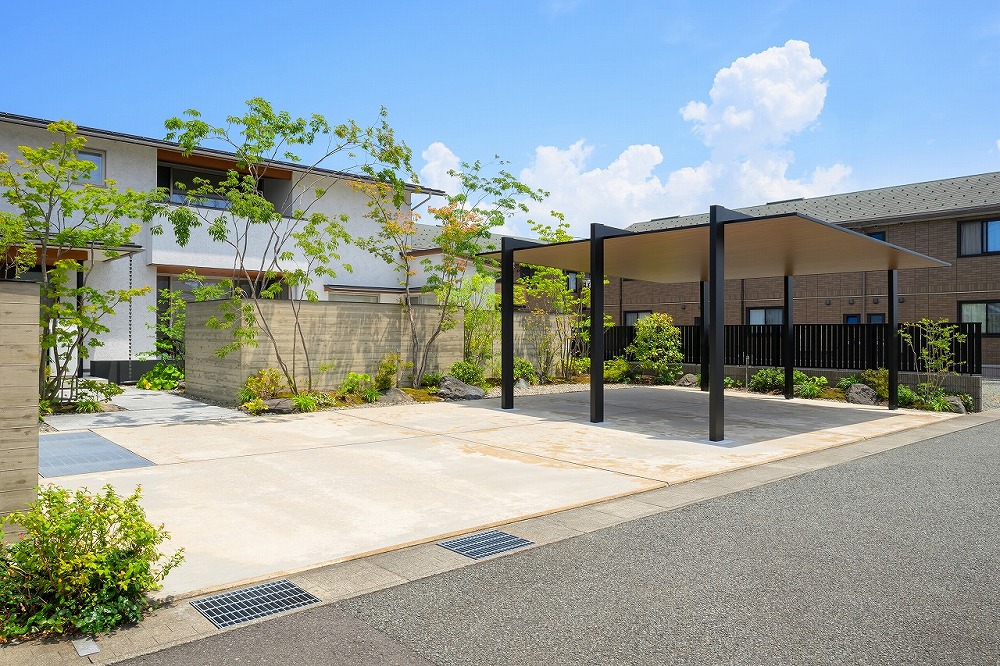 緑に映えるカーポート