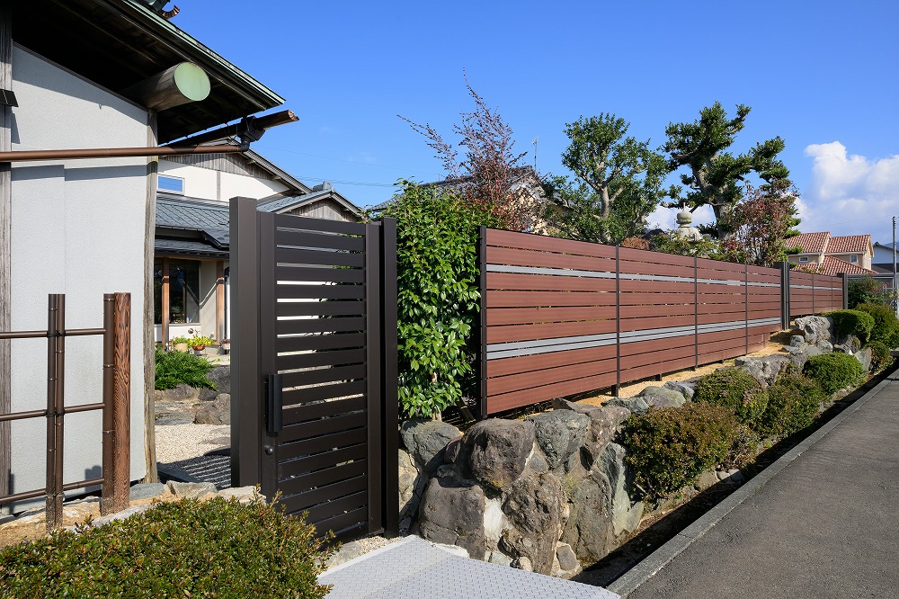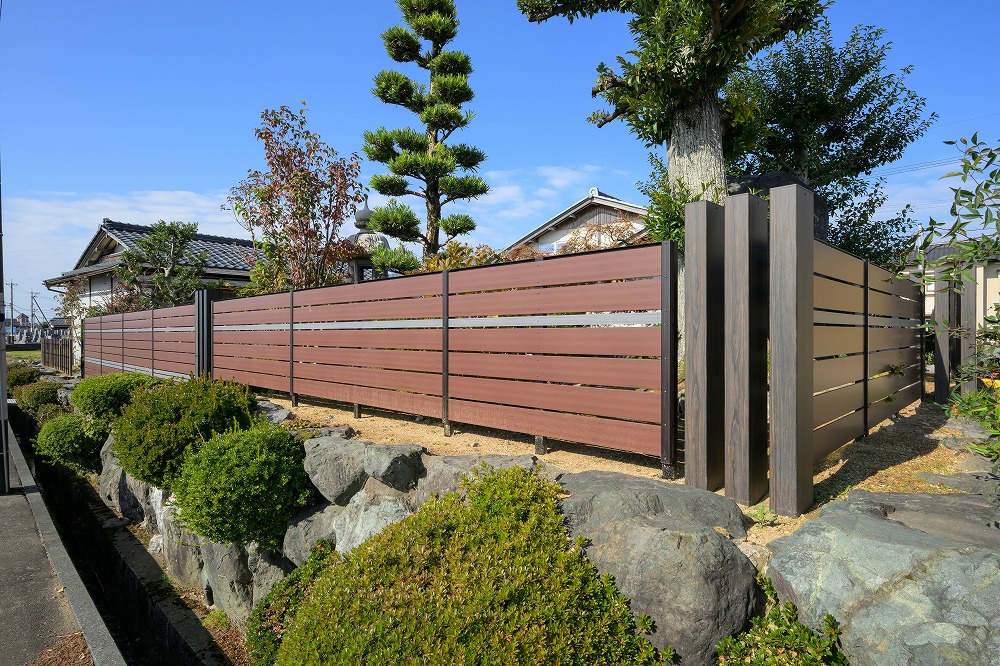 長年お手入れされてきた生垣を思い切って撤去し、フェンスへとリフォームしたお庭です。 「せっかくなら、よく見るフェンスではなく、少し遊び心のあるデザインにしたい」──そんなお施主様の思いを受けて、通常は1色で使うフェンスを3色使いで仕上げました。 既存の石垣は高さが一定でなかったり、敷地のラインが少しずれていたり、さらに大きな木の根が残っていたりと、所々に難しいポイントもありました。 そこで、その“かわしポイント”になる部分には木調のスリットフェンスを配置し、全体のつながりが自然に見えるよう丁寧に調整しています。 色の重なりが生むリズムと障害物を上手に取り込んだライン構成で“ただのフェンス”ではなく、お庭の景色に溶け込む心地よいデザインに生まれ変わりました。